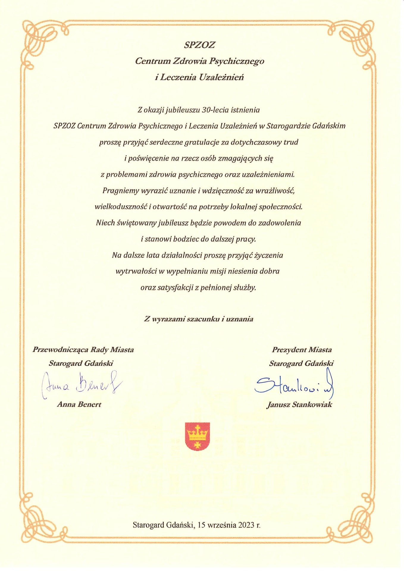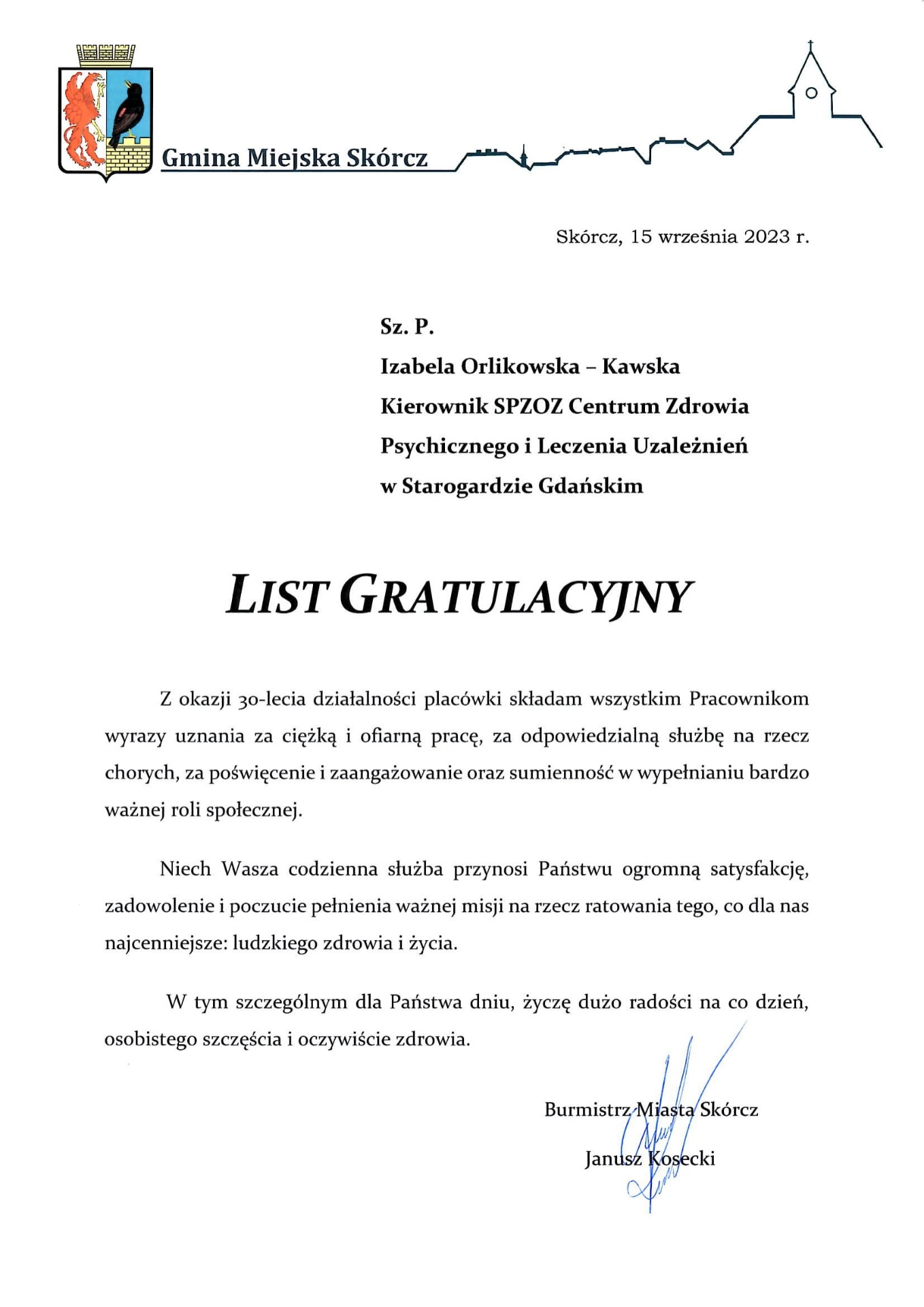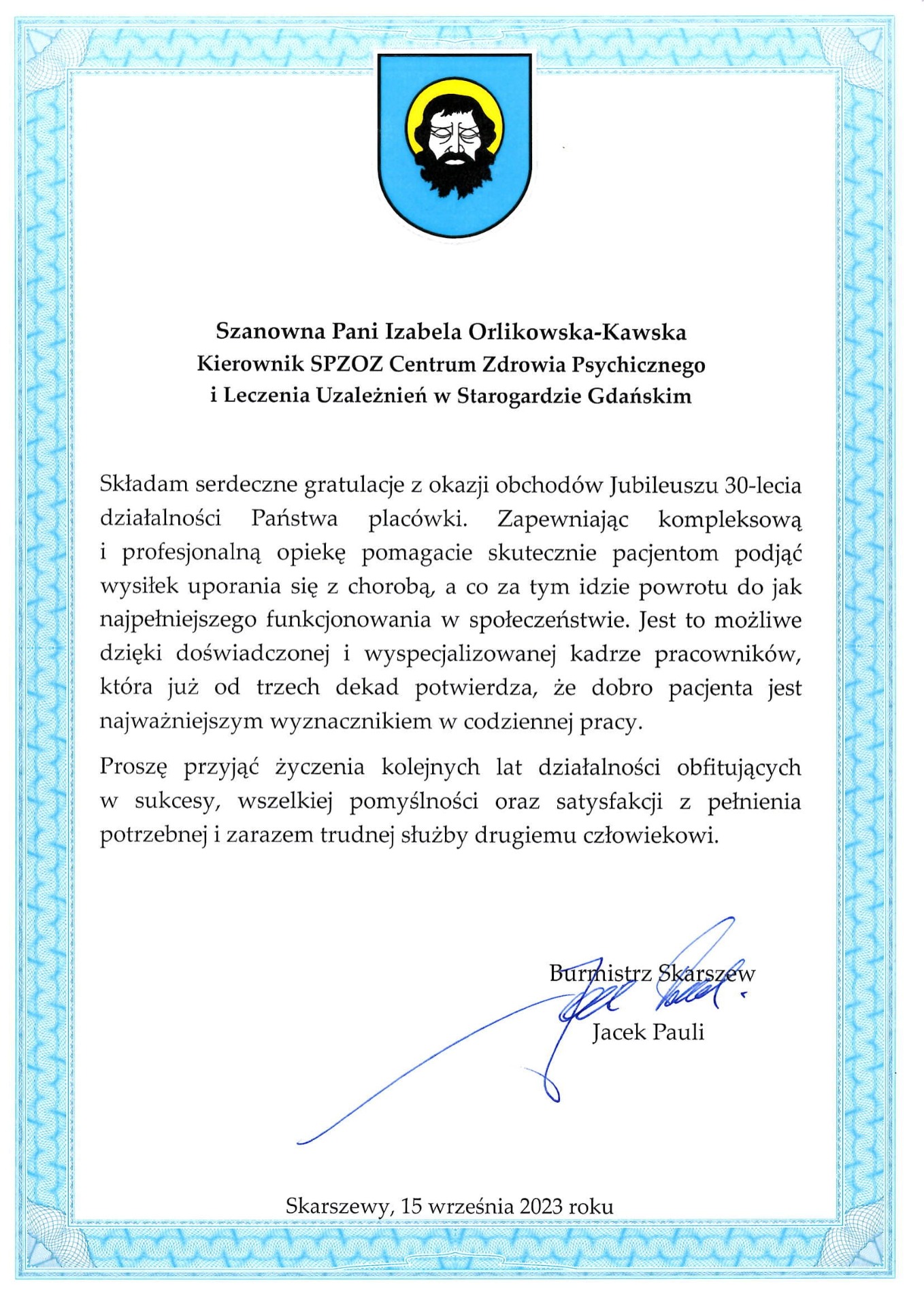 Gratulacje z okazji Jubileuszu 30 lecia placówki