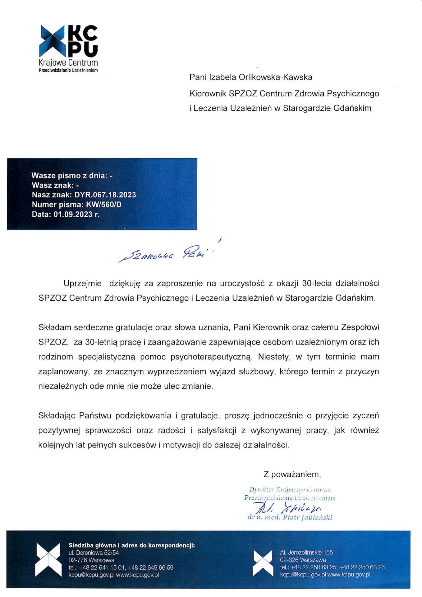 Gratulacje z okazji Jubileuszu...